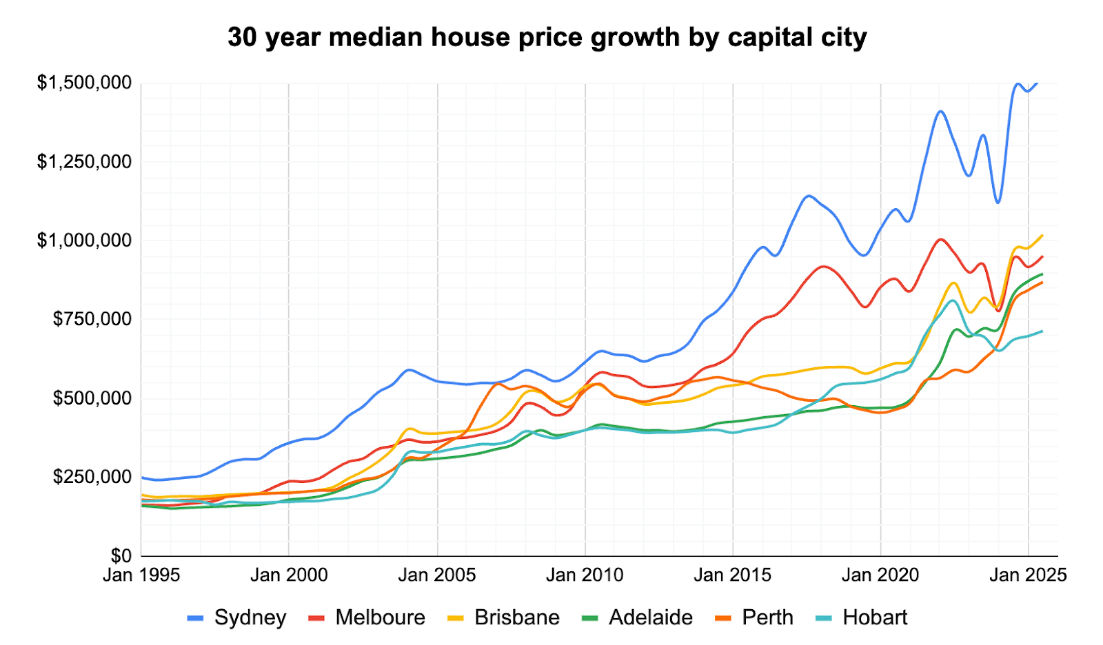 Brisbane property prices growth over the last 10 years has been pronounced, with the city moving from a traditionally affordable capital to one where median house values climbed sharply into the million‑dollar range by late 2025, reflecting years of strong demand and constrained supply. Historical research for Brisbane shows that over the past three decades, low interest rates, sustained population gains and limited new housing have been the main drivers of this long‑run appreciation.