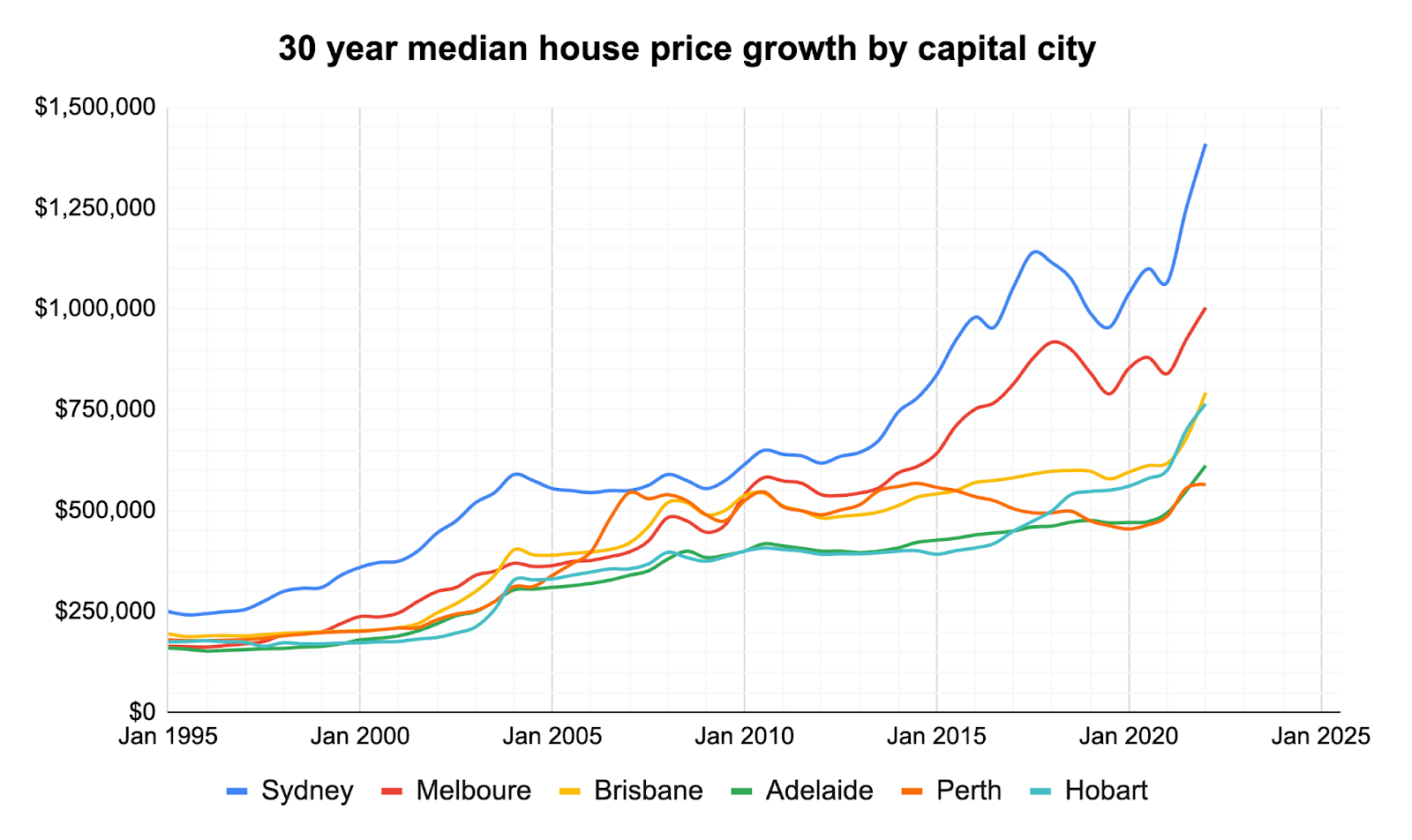 Hobart property prices graph over 30 years